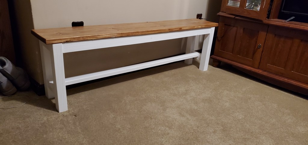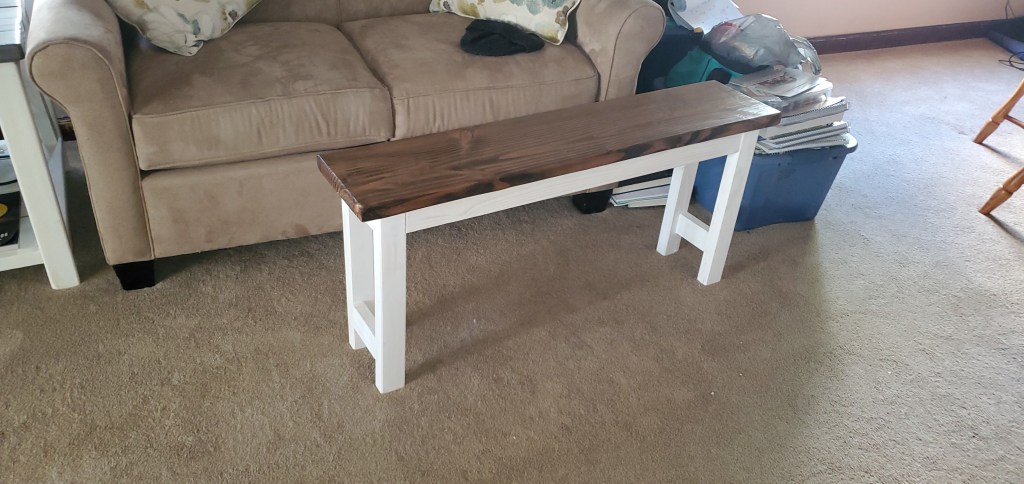 Bench, white with dark walnut stain